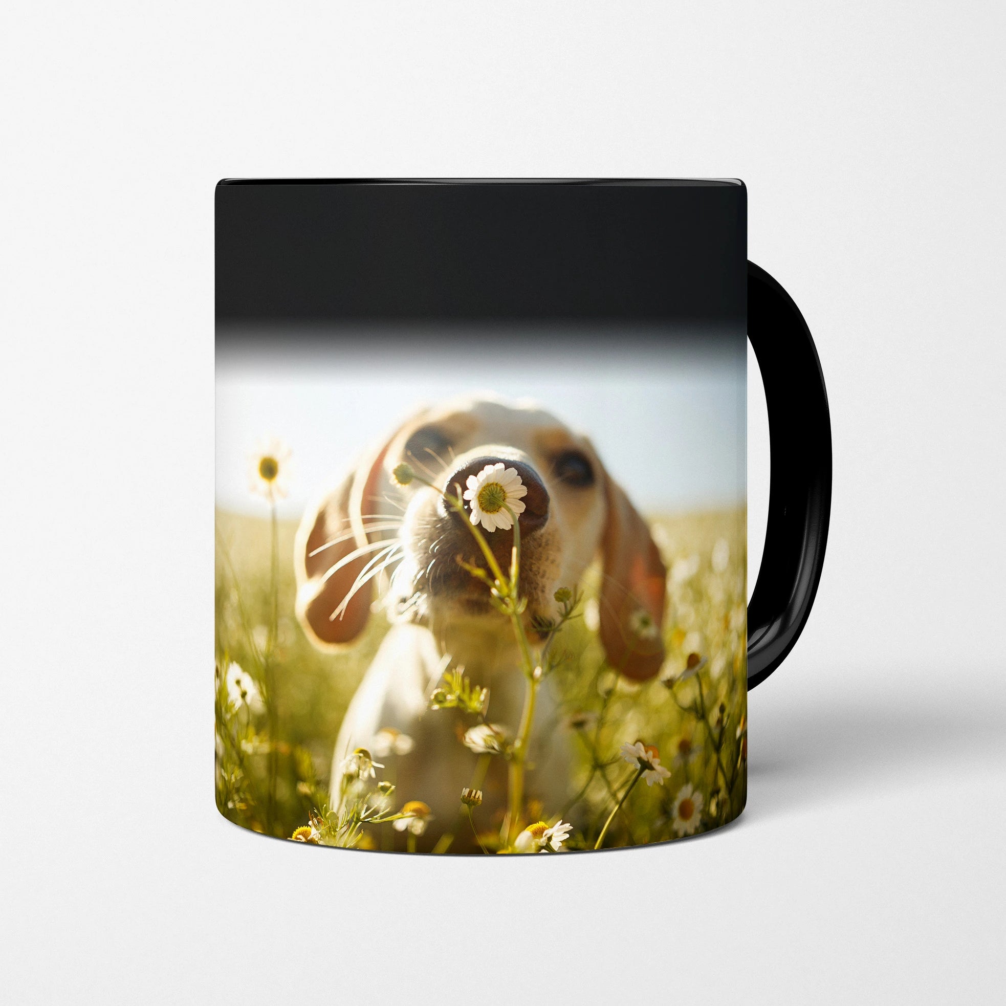 Das Design wirkt nicht nur trendig, sondern wird auf einer beständigen Keramik-Tasse mit 330 ml Fassungsvermögen realisiert. Optional auch als Keramik-Zaubertasse erhältlich. Das heißt: erst schwarz, dann erscheint bei Hitze langsam das individuelle Motiv – wie durch Zauberei. Ideal für Hundeverrückte mit einem Hang zur Magie des Alltags.